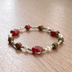 ビーズブレスレット No.138 レッドブラウン ヴィンテージビーズ シルバー パール オータムカラー