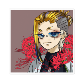 ステッカー - 100 x 100 (mm)恒常グッズ第1弾! 彼岸花に囲まれる祓さん。 ※この商品はpixivFACTORYで作られた商品です。サンプル画像は完成イメージのため、実物と異なる場合があります。