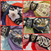 刀剣男士イメージリボンバレッタ&バッグチャーム、初期刀組です。 【加州清光】 黒を基調にした刺繍リボンと、ゴールドカラーの金具、赤のフリルリボン、ブラックのミドルタイで加州清光をイメージしました。 【歌仙兼定】 ブルー、紫を基調にした刺繍リボンと、ロジウムカラーの金具、水色のフリルリボンで歌仙兼定をイメージしました。 【陸奥守吉行】 黒を基調にした刺繍リボンと、ゴールドカラー、金古美の金具とブルーのフリルリボン、ブルーのミドルタイで陸奥守吉行をイメージしました。 【蜂須賀虎徹】 白、紫を基調にした刺繍リボンと、ゴールドカラー、金古美の金具と紫のフリルリボン、ブラックのミドルタイで蜂須賀虎徹をイメージしました。 【山姥切国広】 青と金を基調にした刺繍リボンと、ロジウムカラーの金具とイエローのフリルリボンで山姥切国広をイメージしました。 【仕様】 サイズ…約13cm×約10.5cm リボン部分(本体)…綿、ポリエステルほか バレッタ…鉄 8cm バッグチャームチェーン…14cm