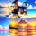 《イラスト素材49点》『輝くサンセットビーチ_海辺_砂浜』_ゲーム素材_画像素材