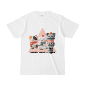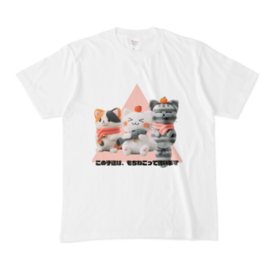 【もちねこグッズ】 可愛い猫の白Tシャツ / 日本語版