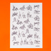 「鳥獣戯画」に描かれた動物のイラストをOHPフィルムにモノクロで印刷しました。 写真で白くみえるところは実際は透明です。 必要な部分をはさみで切り取り、レジン封入用にお使いください。 京都の高山寺に伝わる絵巻物「鳥獣戯画」。日本最古の漫画ともいわれているこの作品、甲乙丙丁の4巻から成り、このうちうさぎ、猿、カエルなどが擬人化して描かれた甲巻が最も有名です。 この中に描かれている動物たちの絵をトレースしてシールにしました。主に複数の動物が共同で何かをしているシーンを選んでいます。 全30点 絵柄のサイズ 長辺16〜23mm 【素材】 OHPフィルム 厚さ0.10mm 【サイズ】 幅105×高さ148mm(A6判、ほぼはがきサイズ) 【購入の際の注意点】 写真と実物では多少色味が異なる場合があります。 市販のインクジェットプリンタにOHPフィルムを使って印刷しているので、精密さに欠けるところがあります。 このフィルムを使用して制作したオリジナル作品の販売はOKです。 フィルム自体の転売やコピーはおやめください。