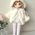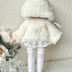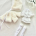 お人形さん達にお部屋でゆっくり過ごしてもらうための「お部屋着セット」です。 ホコリや直射日光を避け、通気性を確保しながら傷が目立ちやすい髪パーツを保護できるようなセットにしました。 セット内容 フード風帽子 上着 ロングキャミソール ドロワーズ ロングソックス フードは上着本体に縫い付けられていません。 別付けの帽子になっていますのでロングタイプの髪パーツでも大丈夫です。 ※3枚目の画像は「萌獣魔法」です。ロングタイプの参考にしてください。 傷防止のためには外に出た部分をティッシュで包む等してください。 前リボンで結ぶとサイドの髪パーツもしっかりカバーできます。 ツーテールやウサ耳など、お人形の髪型によってはフードに入りきらないものもあります。 上着には前を閉じる金具などはありません。 ヴィンテージトレジャー 古董礼物盒シリーズの手首パーツは外さずに着せかえできます。 着せかえしづらい時は手首パーツを外してください。 帽子、上着ともに綿ジャージ生地の裏地がついています。 キャミソールは後ろ開きで、小さな樹脂製のスナップ止めです。 スナップはきちんと止まるか確認していますがパチンという音がしないものもあります。 凹凸部分を重ねてゆっくりねじ込むようにすると止めやすいです。 ドロワーズとキャミソールはダブルガーゼ生地で作っています。 その他の生地やレースと色味と質感が異なります。 ソックスは太ももの付け根のパーツ分割線を隠せる丈になっています。 ご注意ください お洗濯はできますが風合いが崩れるのであまりおすすめしません。 汚れがついてしまった場合は中性洗剤を含ませたティッシュなどで軽く叩いて吸い取らせるようにしてください。 家族に喫煙者はいません。 猫がいます。できる限り気をつけていますが毛などが付着している場合があります。アレルギー体質等の方はご注意ください。