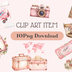 ピンクでアンティークな可愛い水彩クリップアート10点セット