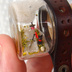 灯火には蓄光塗料を使用しておりますので暗闇やUVライトで蛍光します。 高さ約30mm 横約30mm 主な材料・ガラス瓶、砂溶きボンド、水晶 ※注意事項 到着時の破損につきましては対応いたしますのでご連絡願います。 微に入り細に入り実物を見た際に見える細かな傷、 印象の違い、想像されていた色味との違い等 写真から判定できる明確な破損以外の事柄に関しては 対応できかねますのでご了承願います。 全て一点物になりますので個体差があります。 ガラス製品なので思わぬ衝撃で破損する恐れがあります。注意して取り扱ってください。 蓋のコルクは外れる恐れがあるのでアクセサリ等として使用することは絶対にお止めください。 収れん火災や劣化を避けるために直射日光を避けカビ予防のために高温多湿を避けて保管してください。 小さなお子様やペットがいるご家庭は誤飲にお気をつけください。 事故が起きましても責任を負いかねますので予めご了承ください。