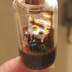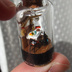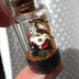 瓶・高さ約40mm 直径約15mm 主な材料・ガラス瓶、砂溶きボンド、エポキシパテ 箱サイズ56×35×17mm 灯火には蓄光塗料を使用しておりますので暗闇やUVライトで蛍光します。 ※注意事項 到着時の破損につきましては対応いたしますのでご連絡願います。 微に入り細に入り実物を見た際に見える細かな傷、 印象の違い、想像されていた色味との違い等 写真から判定できる明確な破損以外の事柄に関しては 対応できかねますのでご了承願います。 全て一点物になりますので個体差があります。 ガラス製品なので思わぬ衝撃で破損する恐れがあります。注意して取り扱ってください。 蓋のコルクは外れる恐れがあるのでアクセサリ等として使用することは絶対にお止めください。 収れん火災や劣化を避けるために直射日光を避けカビ予防のために高温多湿を避けて保管してください。 小さなお子様やペットがいるご家庭は誤飲にお気をつけください。 事故が起きましても責任を負いかねますので予めご了承ください。