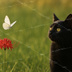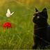 風に揺れる赤い花と、舞い降りた白い蝶を