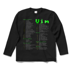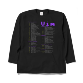 よく使うと思われるvimの操作コマンドのVim Cheat Sheetです。 フォントには、IBM PC System BIOSと同じものを採用しレトロでありながらおしゃれな仕上がりになっています。 肌寒くなってきたので長袖も作ってみました。印刷面積の関係上、Tシャツと比率が若干変化しております。 ■メリット インターネットがない、パソコンも持っていない状況でデータセンターに閉じ込められても、とりあえずvim操作が行えます。 ■デメリット このTシャツを着なくてもmanコマンドで同じ内容が見えてしまいます。 この商品はpixivFACTORYで作られた商品です。サンプル画像は完成イメージのため、実物と異なる場合があります。