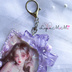 パープル レジン 硬質トレカケース キーホルダー マグネットジェル リボン シルバー 薔薇 紫 カード キーホルダー バッグチャーム ケース