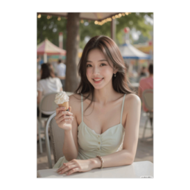 この商品はpixivFACTORYで作られた商品です。サンプル画像は完成イメージのため、実物と異なる場合があります。 やわらかな陽射しの下、カフェテラスでアイスを手に微笑む女性。夏の午後の幸福感を描いた一枚です。淡い色合いが優しさを感じさせます。