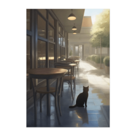 この商品はpixivFACTORYで作られた商品です。サンプル画像は完成イメージのため、実物と異なる場合があります。 朝の光が差し込むカフェテラス。 まだ人のいない静かな時間、黒猫だけが日差しを見つめている。 穏やかな現代アニメ風の一枚。