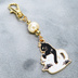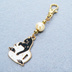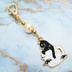 白いマグカップでくつろぐ黒猫チャームとベージュカラービーズのキーホルダー 金具変更可