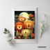 満月を祝うサバンナの仲間たち、印刷可能なポストカードデザイン ver.3