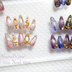 ◆こちらは、SDGrgirl・DDデカハンド等におすすめサイズのネイルチップです。 ※ドール着用写真はイメージです。実際のお品物は一枚目のデザインです。 ※システム上個々でお求めいただきますとお会計ごとに送料がかかってしまいます。 ※こちらで確認できていないハンドにも装着可能ですがサイズ表をご確認くださいませ ◆内容に予備のチップが3本付きます。(左から親指・中指・小指のサイズになります※中指は人差し指薬指に使うことも可能ですお好みで削って下さい) ◆今回も全て一点ものになります。 ※似たデザインの再版をする場合はございます。 -AbendVers-のドールサイズネイルチップはネイリストの経験と技術を生かし強度や、素材など吟味し1枚ずつベースから手作業で作っております。(一つずつ検品しておりますが手作業で制作をしております、細かな繊維などが入ってしまう場合もございます) ・お手持ちのハンドにお付けいただけます ※ハンドの形状によっては(握り手、ピースなど)お着けいただけない指がございます ☆ご注文前に 素材・配送方法・サイズ・ご使用方法・注意事項 をご確認くださいませ。 ※下記に詳細がございますが、詳しいお取り付けなどは同封させていただきます。 【素材】 ポリマータイプの光硬化型アクリル樹脂(合成樹脂 爪化粧料用を 使用) 【配送方法】 こちらの商品は あんしんBOOTHパックネコポス ¥370(全国一律)で配送させていただきます。 【梱包】 ネイルチップは1セットずつ ケースにお入れし、破損がないよう十分に注意し発送させていただきます。 【ドールサイズのネイルチップとは】 名称通り ・ハンドパーツを含まないネイルチップのみの販売となります。 ・お手持ちのハンドパーツにご自身で張り付けていただく必要があります。 ・ネイルチップの接着剤として水性木工用ボンドをご利用いただけば剥がすことが可能ですので、同じハンドパーツに違うネイルチップを張り替えていただくことが可能です。 ※無理に剥がすと(ハンドペイントをされているハンドは)ペイントが剥がれる可能性もあります。 また、サイズ・貼り付け位置をそろえていただければネイルチップをシャッフルしてオリジナルの組み合わせで着けていただく事も可能です。 【ネイルチップのサイズについて】 ネイルチップをご購入いただく前にお手持ちのハンドパーツの爪のサイズをご確認下さい 爪の造形はハンドパーツの種類ごとに微妙に違います。 ※画像のサイズ表を目安に、お手持ちのハンドパーツに合うものをお選びください。 ※全て手作業で製作しています。サイズ表の記載はおよそです。 ※サイズ表のサイズはネイルチップ自体のサイズです。 ※デザインによって(カットスタイルや厚み)長さは少し変わる場合がございます。 ・ハンドパーツにより爪の造形に個体差があります。サイズが微妙に合わない場合は、チップを削ってサイズ調節してください。 ・ハンドパーツの指の形状によってはすべてのネイルチップをつけられない場合があります。(握り手やピースハンド等)ハンドパーツの指の重なりかたなどで着けられない場合があります。 ※アートの種類によりネイルチップの厚みは異なります、アートが指に干渉してしまう場合は、人差し指、中指、薬指などシャッフルしていただけます 干渉しにくいお指にお付けくださいませ。 【貼り付け方】 ・細かいパーツになりますので、張り付け作業などは トレーの上などで作業いただくと紛失防止になります。 ≪小さなお子さまやペットのいるご家庭では特にご注意ください≫ ・接着は、水性木工用ボンド(剥がすことが可能です)か、固定の場合は水性でない接着剤などをご利用ください。乾くとクリアになるものをおすすめします!! (揮発性接着剤は白く曇る可能性があります、お避けください) ・接着剤は爪楊枝などの先に少量とり、ハンドパーツの爪部分中心に置いていただくか薄く伸ばし、ネイルチップを張り付けてください。 ※Gr女の子の場合、(水性ボンドなどご使用の場合)少し多めにボンドを着けていただくとしっかり固定できます。 【接着後のお取り扱いについてのご注意】 ネイルチップを接着したハンドパーツのお取り扱いには十分にご注意下さい。 ・ネイルチップを引っ掻けたりハンドパーツに衝撃をあたえたりすると破損・紛失に繋がる可能性があります。 破損・紛失防止に、ドールを動かしたりドレスの着替え等を行うときはハンドパーツにビニール袋をはめていただくか、ハンドパーツを外して下さい。 ・[水性木工用ボンド]をご利用いただいた場合、ハンドパーツからネイルチップを剥がした時に、ハンドパーツ側に接着剤が残ってしまった時は、湿らせたティッシュで優しく拭き取ってください。(水性木工用ボンドは固まった後も水で溶けます) 【ご使用の注意事項】 ※長期間付けたままにする場合等は色移りにご注意ください、当方で確認した限り(ソフビ素体に木工用ボンド使用で2週間