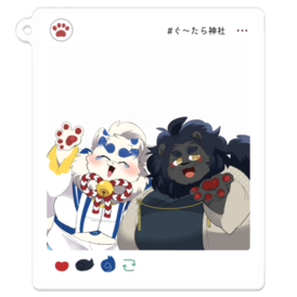 ぐ~たら神社の黒井獅音&犬井狛白の公式グッズ! おでかけ先でつい写真を撮りたくなってしまう、SNS風フォトフレームキーホルダーです。 ただし2匹ともBIGサイズ!うまくフレームに被写体を収められるでしょうか!? ファンならぜひ手に入れたい、実用性バツグンのアイテムです! イラスト:ヒャク様(https://x.com/hyaku1063)