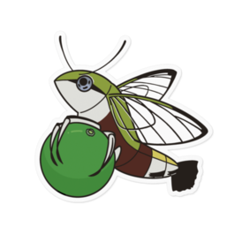 ステッカー - 100 x 100 (mm)オオスカシバのステッカーです。 100㎜×100㎜ 白背景 pixivFACTORYで作成したため少々原価高めです。 より安価な小サイズのステッカーも後日追加予定です。 この商品はpixivFACTORYで作られた商品です。サンプル画像は完成イメージのため、実物と異なる場合があります。
