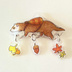 背中にリュックを背負って、木の実や落ち葉を探しながらお散歩するフェレットさん。 ゆらゆら揺れるどんぐりや紅葉のチャームが、秋の楽しい雰囲気を添えてくれます。 カニカン付きなので、お手持ちのストラップ金具やバッグチャーム金具にも取り付け可能です。 【サイズ】 本体:約3.7cm × 5cm(プラバン部分) 【お届けについて】 ・ご購入後に「丸カン」と「カニカン」を装着してお届けします。 (※金具については写真4枚目をご参照ください) 【素材】 プラバン、レジン、金具(丸カン&カニカン:ご購入後に装着します) 【シリーズ名】 あきびよりフェレットシリーズ ゆらゆらフェレットシリーズ 【作品について】 ☺︎︎プラバンの表面・裏面・側面すべてに、何度かレジンを重ね塗りしてコーティングしています。 ☺︎︎手描き・手作業のため、色味や形に個体差やムラ、小さな気泡・塵が入る場合があります。 【梱包、配送について】 ■簡易包装(台紙と作品を透明袋に入れ、プチプチで梱包)での発送予定です(匿名配送、追跡付き) ■発送日は指定できません。少し余裕をもってご購入いただけると安心です。
