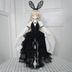 白インナー(アームバンド2本含む) ホルターネックワンピース ウエストコルセット 靴下 うさ耳カチューシャ 白ふわもこポンポン(クリップ)
