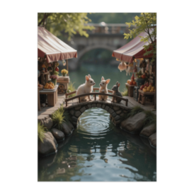 この商品はpixivFACTORYで作られた商品です。サンプル画像は完成イメージのため、実物と異なる場合があります。 川辺の小さな橋の上、うさぎたちが楽しげに語らう。水面のきらめきと木漏れ日が美しい、幻想的なミニチュアワールド。温かいジオラマトーンが心を癒すポスター作品。