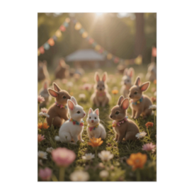 この商品はpixivFACTORYで作られた商品です。サンプル画像は完成イメージのため、実物と異なる場合があります。 色とりどりの花畑で開かれる小さな動物たちのお祭り。花飾りをつけたうさぎたちが笑顔で集う、夢のようなファンタジーポスター。Flux FP8の温かな光が世界を包みます。