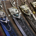 本体:ステンレス鋼、亜鉛合金、真鍮、ガラス チェーン:ステンレス鋼 ネクタイ布:ポリエステル