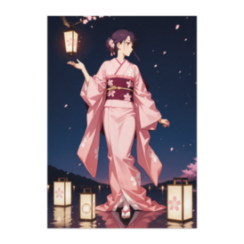 この商品はpixivFACTORYで作られた商品です。サンプル画像は完成イメージのため、実物と異なる場合があります。 春の夜、桜の下で灯りを手にした着物美人。 静かな水面に灯籠がゆらめき、花びらが風に舞う。 柔らかな光に包まれた日本の美を、現代アニメイラストで描いた一枚です。