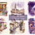旅の情景コレクション 旅先で出会う情景を、やさしいラベンダーの色彩で描いた水彩風の風景セット。 心をくすぐるノスタルジックな世界を収録。 繊細な光と空気感を大切にした幻想的なシリーズです。 内容例: 駅のホーム/カフェテラス/石畳の路地/本屋の前/時計台の広場/夜の街灯通り (全6点) 📁 ファイル形式 PNG(背景透過) 解像度:高画質(印刷・デジタル両用) 点数:6点 ZIP形式でまとめてダウンロード 💡 利用例 カードデザイン・ポスター・招待状 SNS投稿素材 スクラップブックや手帳デコ素材 季節のクラフト作品など ⚠️ 注意事項 ※本作品はAI(Canva AI/ChatGPT等)を使用して制作したイラスト素材です。 加工・修正・色調整など、人の手による編集を行い、作品として仕上げています。 個人・商用利用OK(再配布・転売は禁止) 背景は透過済みなので、そのままデザインに重ねて使えます