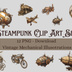 【Canva】スチームパンク風乗り物クリップアート12点セット|PNG背景透過