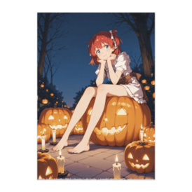 この商品はpixivFACTORYで作られた商品です。サンプル画像は完成イメージのため、実物と異なる場合があります。 夕暮れの中、優しい光に包まれた少女とジャックオーランタンたち。落ち着いたトーンの中に、ハロウィンのぬくもりを感じる作品です。