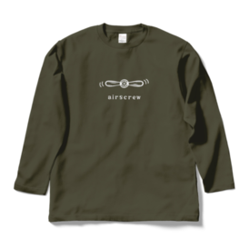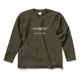 ロングスリーブTシャツ - XL - アーミーグリーンプロペラ柄のロングスリーブTシャツ♪ WOLFJAM BASE所属、 広報飛行隊「RETROJAM WINGS」 の象徴のレトロなプロペラのデザインです ジャケットに合わせやすいシンプルなデザイン♪ この商品はpixivFACTORYで作られた商品です。サンプル画像は完成イメージのため、実物と異なる場合があります。
