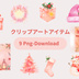 ピンクの水彩クリスマスクリップアートセット 🎀(PNG形式)
