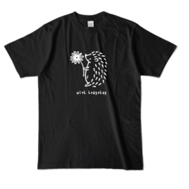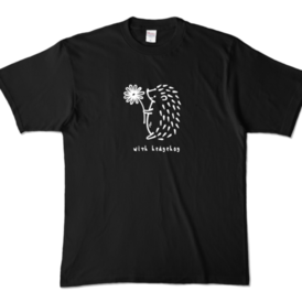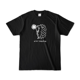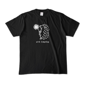 カラーTシャツ - XL - ブラック (濃色)ノギクを手に、幸せを感じるハリネズミくん!