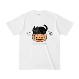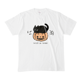 Tシャツ - XL - 白かぼちゃに乗ってご機嫌の黒猫君♪