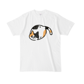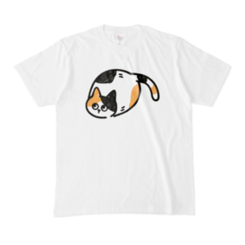 Tシャツ - XL - 白丸っこい三毛猫君です!