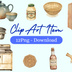 アンティーク風 水彩画キッチン用品クリップアート ナンバー➁ 12種類セット(背景透過PNG)