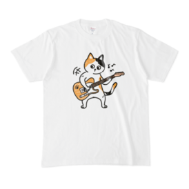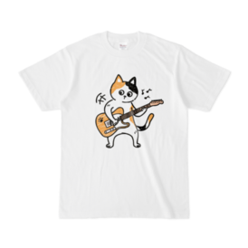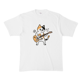 Tシャツ - XL - 白ギターを弾くロックなみけねこ君です!