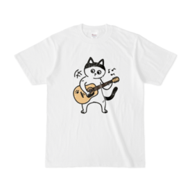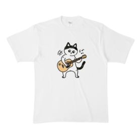 Tシャツ - XL - 白アコースティックギターを弾くヅラ猫君です!