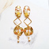 オレンジブラウン×ターコイズグリーンのグラデに、太陽のメタルパーツやオレンジのシェルパーツ、ドライフラワーをあしらいました。