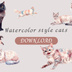 水彩画風 猫ちゃんのクリップアート