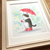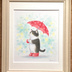 ★ 2025年10月「よねあり展in東京・早稲田」展示作品★ 《作品情報》 「はちわれ猫と傘」 制作年:2025年 使用画材:透明水彩・色鉛筆 額サイズ:八つ切額(外寸28.8cm×35cm) マット窓サイズ:19cm×22cm アクリル板使用(ガラスに比べ軽量で割れにくいです)壁掛け用の紐付き 額装した状態でお届けいたします。 手描きの原画作品、一点限りの販売となります。 ーーーーーーーー 「Umbrella and Tuxedo Cat」 Art materials used:Watercolor paper, watercolors, colored pencils. Picture frame size:28.8cm×35cm Will be shipped framed. This is a hand-painted original artwork, so only one piece will be sold.