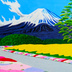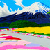 ★花道と富士山・肉筆油彩画・F6キャンバス