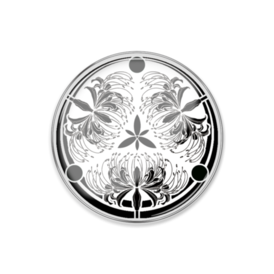 彼岸花ピンバッジ 家紋風 丸形25mm