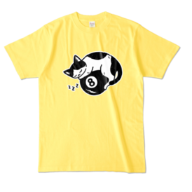 カラーTシャツ - XL - イエロー (濃色)エイトボールの上でぐっすり寝ているハチワレくんです♪
