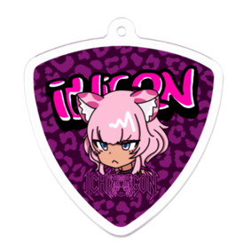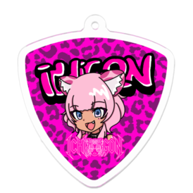 アクリルキーホルダー - 50 x 50 (mm)(1)いちごんのピック型アクキーです。 ギターの演奏には向いていませんので、かばん等にぶら下げると良いでしょう。