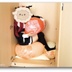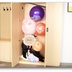 小悪魔がクローゼットで小さな風船を遊ぶ(口で膨らませて、割る)