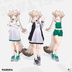 It will be necessary to utilise a number of the respective avatar's "shrink" keys in order to avoid intersections with the body. An image guide for each avatar is provided that shows which shape keys will be necessary, furthermore the provided menu will assume you have set these properly and will toggle the respective shrink shape keys for each article of clothing. If you do not wish to use the menu or would like to set up your toggles manually, you can simply remove the "MyPace_Menu" object within the prefab. In some cases, a separate "flat" or "small" prefab is provided. While the weight painting doesn't differ from the default prefab, using it will ensure shading (normals) works properly with a flat chest. The flat chest prefabs also have the necessary shape key to increase the chest size to the next size up (usually the default size), so you can use the flat chest prefabs even if your avatar isn't completely flat chested. ※ Please ensure your breast physbone values are set to appropriate values relative to your breast size. While the accommodations for large breasted avatars have been made, the hoodie will look best on avatars with smaller busts. ボディとの干渉を避けるために、各アバターに対応した「縮小(shrink)」シェイプキーをいくつか使用する必要があります。 各アバターに対応した画像ガイドが用意されており、どのシェイプキーを使用すべきかを確認できます。さらに、同梱のメニューはこれらのシェイプキーが正しく設定されていることを前提としており、各衣装に対応する縮小シェイプキーを自動で切り替えるようになっています。 メニューを使用したくない場合や、トグルを手動で設定したい場合は、プレハブ内の「MyPace_Menu」オブジェクトを削除するだけで構いません。 場合によっては、「flat」または「small」プレハブが別途用意されています。これらはデフォルトのプレハブとウェイトペイントに違いはありませんが、平らな胸のアバターで使用した際にシェーディング(法線)が正しく表示されるようになります。 また、「flat」プレハブには胸のサイズを1段階大きくするためのシェイプキー(通常はデフォルトサイズ相当)も含まれているため、完全なフラットチェストでないアバターでも使用可能です。 ※ バストサイズに応じて、バストのPhysBoneの値が適切に設定されていることを確認してください。 大きなバストのアバターにも対応していますが、パーカー(フーディ)は小さめのバストのアバターで最も自然に見えるようにデザインされています。