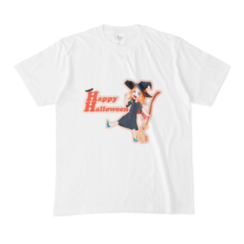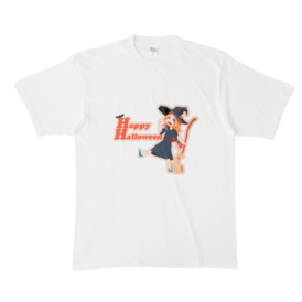 Tシャツ - XL - 白この商品はpixivFACTORYで作られた商品です。サンプル画像は完成イメージのため、実物と異なる場合があります。 ハンバーガーを食べる娘の第七弾! ハロウィンで浮かれる娘のイラストが描かれた可愛らしいTシャツです。