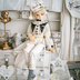 ※深色生地は固色処理済みですが、摩擦や湿度・温度・着用時間により色移りする場合があります。特にラバー肌等のボディは長時間の着用を避け、撮影後は速やかに脱がせてください。 ※関節・ゴム・袖口など肌に密着する箇所は色移りしやすいです。完全防止はできませんのでご了承ください。 ※衣服はやや長めのため発送時は折りたたんでお届けします。着用前はハンガーにかけてスチームで整えると理想的なシルエットになります。袖は下に軽く引っ張りながらスチームを当てると整いやすいです。 ※尖り襟シャツは後ろボタン開閉、袖口はスナップボタンです。左右の襟や包みボタンには手作業による個体差がございます。 ※パンツのウエストテープは幅にムラがある場合があります。モデル写真をご確認ください。 ※袖やオーバーチュールのドットチュール生地は非常に繊細です。尖った物との接触や強い引っ張りにご注意ください。 ※襟飾り・オーバーチュール装飾・ジルコニア風チャーム等は手作業で制作しております。完全な左右対称ではなく、手作業痕が残る場合があります。 ※金属製品は経年で酸化することがあります。乾燥剤と一緒に保管することをおすすめします。 ※完璧を求める方はご購入をお控えください。