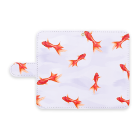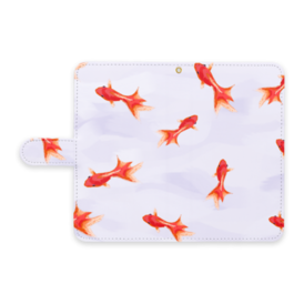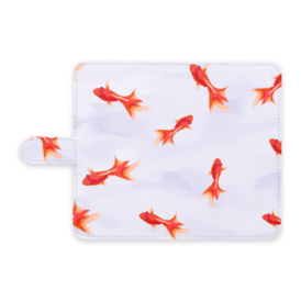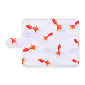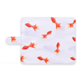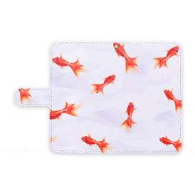 手帳型Androidケース 魚03 金魚 レッド ブルーグレー