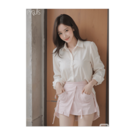 ポスター - B2この商品はpixivFACTORYで作られた商品です。サンプル画像は完成イメージのため、実物と異なる場合があります。 やわらかな春の日差しに包まれた笑顔。淡いピンクのミニスカートと白いブラウスが、軽やかで優しい雰囲気を演出します。あなたの部屋に春風のような明るさを。